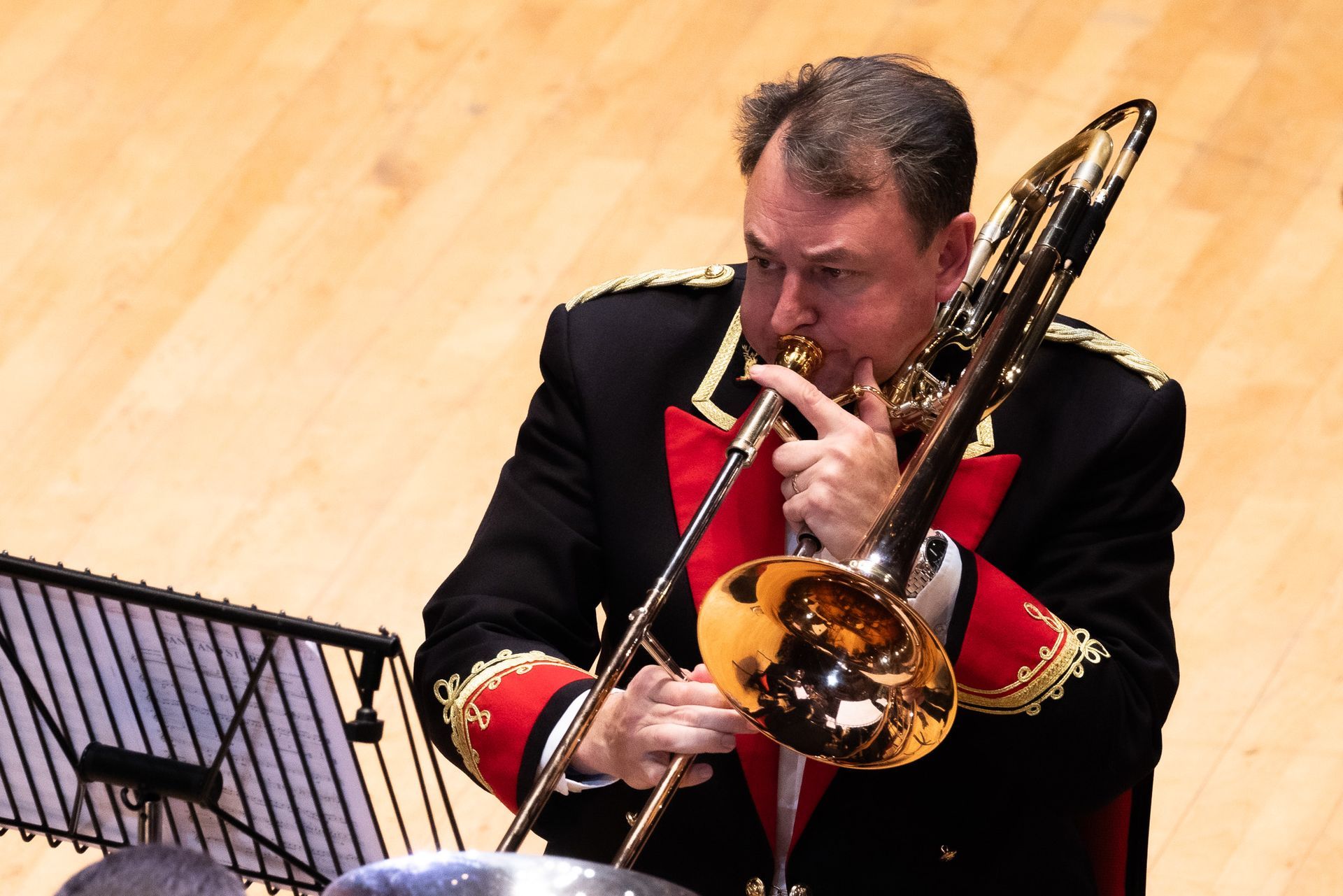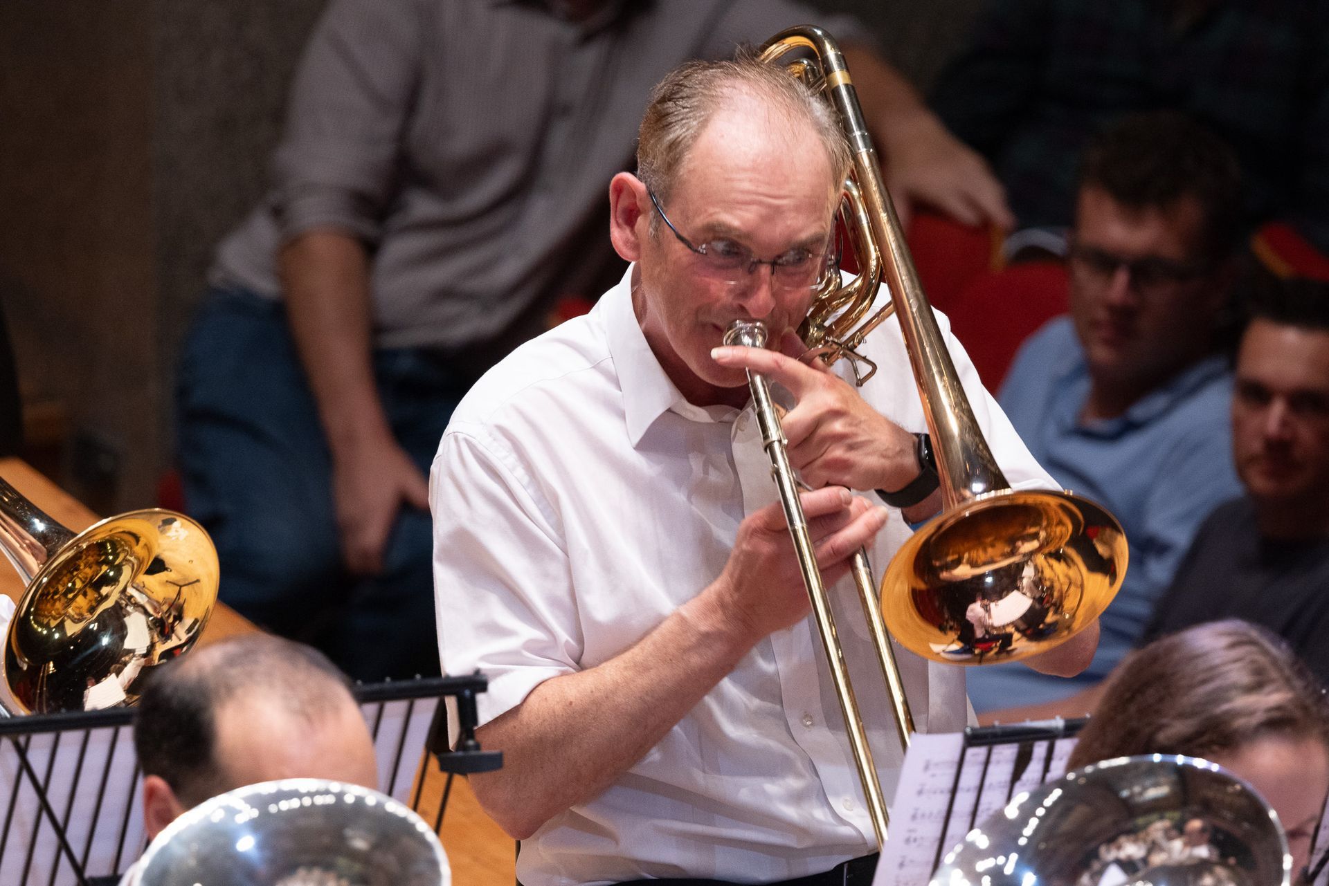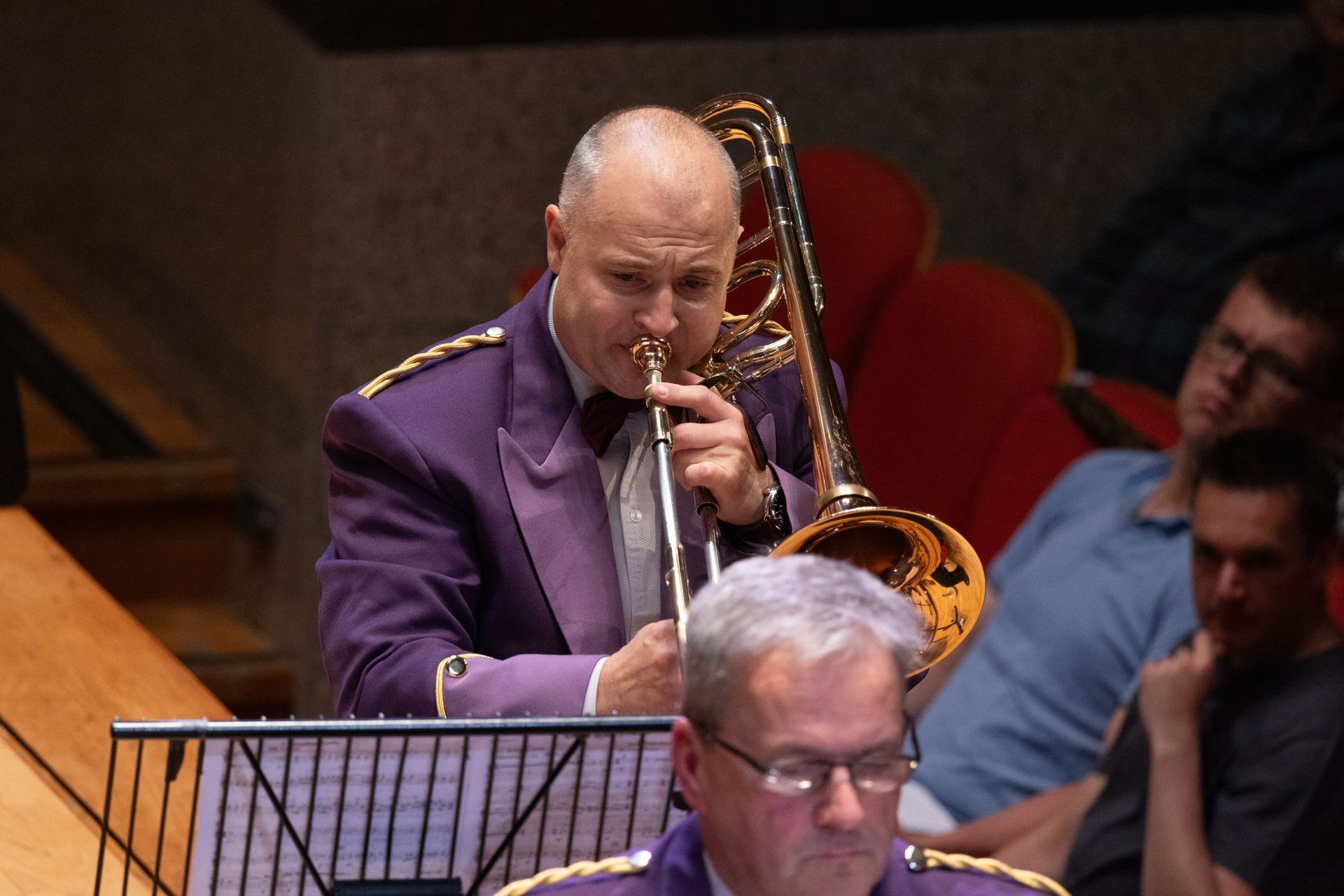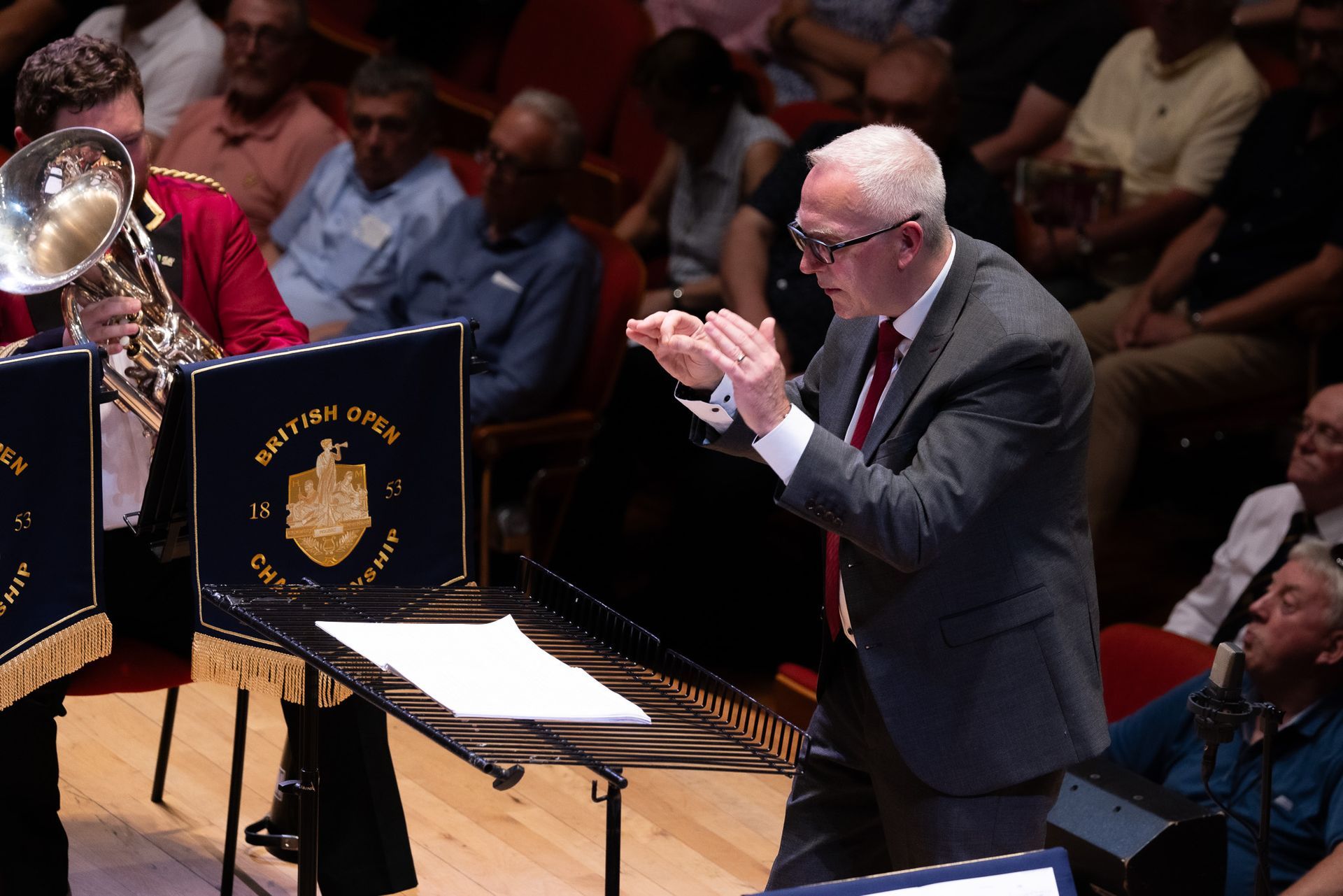 Lovely opening, really well handled and well played. Bags of excitement as the parts build, mixed with some moments of insecurity that stop the flow, nice big sound, bit edgy from my seat, but settles well and sounds impressive. We get some lovely ‘sit back and listen’ moments, the solo sections sound great and the band are really pushing to get the most from the piece and a lot of the work has really paid off.